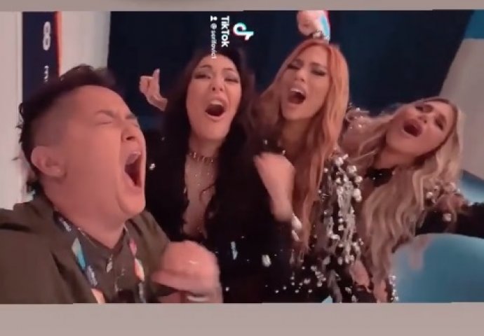 Na snimci se vidi kako Sanja Vučić, Ivana Nikolić i Ksenija Knežević skaču i vrište od sreće što će pjevati u subotu u finalu.
