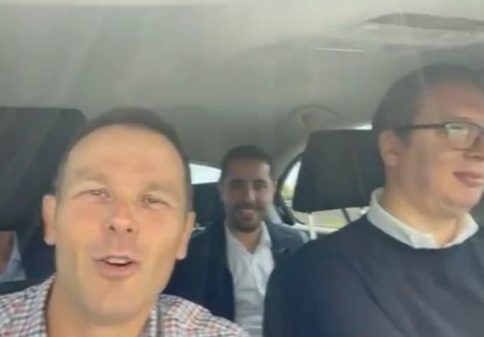 - Evo nas u dorboj atmosferi, na putu za Šabac. Imamo jednog dobrog, ozbiljnog i nekvalifikovamog vozača, našeg predsjednika - može se čuti na snimku.