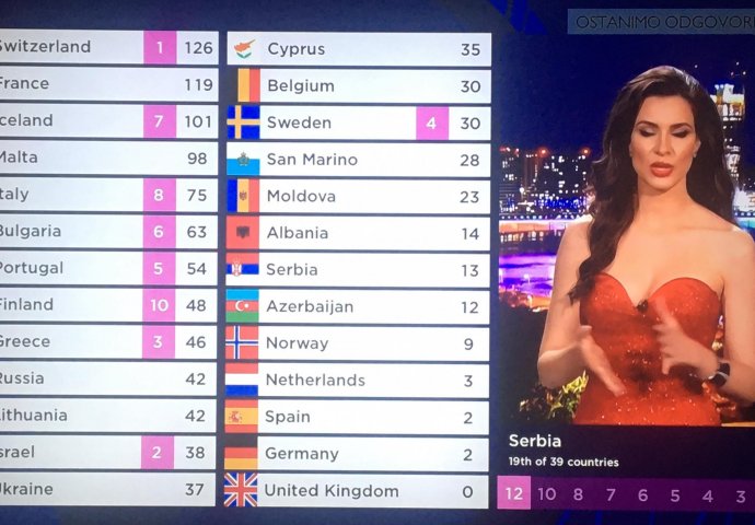 A evo kako je glasala Srbija, 12 bodova je otišlo za Francusku.