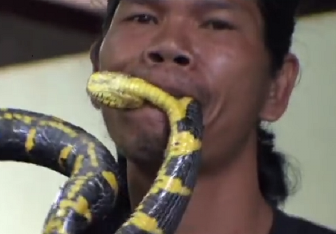 Čovjek čije je znimanje da grize otrovne zmije (VIDEO) Zanimljivosti 10.09.15. 12:07 Dok se drugi boje čak i pogledati zmiju ovaj čovjek ih grize. Svi smo navikli čuti kako je nekoga ugrizla zmija, i koliko su zmije opasne. No, što se dogodi kada čovjek ugrize zmiju? Kako uopće do toga dođe, i koji je razlog?