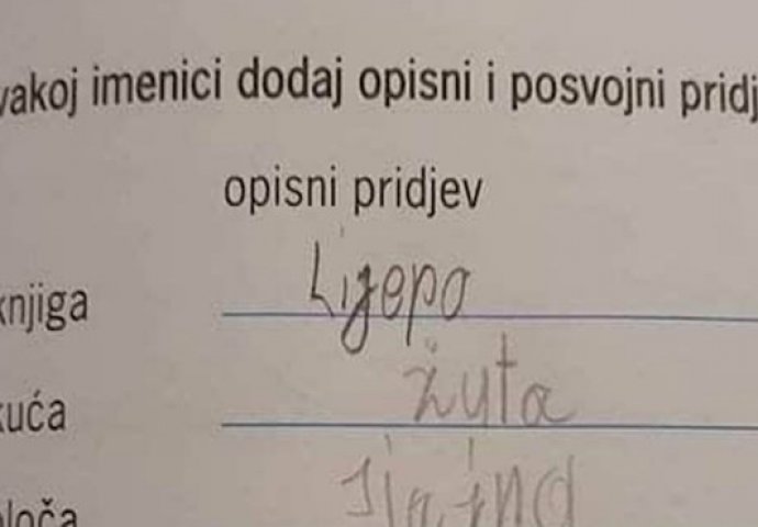 Učenik je trebao dodati imenici opisni pridjev, a kad je na red došla sestra biće vam jasno zašto je nasmijao sve na društvenim mrežama.