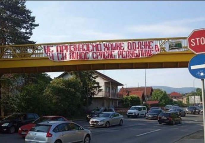 Na banjalučkom tranzitu stoji transparent na kojem piše: "Ne priznajemo haške odluke, ti si ponos srpske republike", stoji na transparentu.