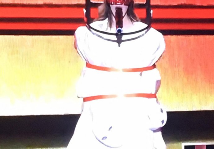 Nakon toga se pojavila na sceni, presvukla se u bijelu haljinu.