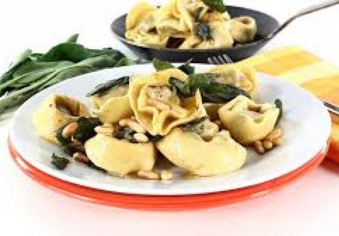 Izvaljajte preostalo tijesto te stavite na prvu polovicu tijesta. Pritisnite oko nadjeva te izrežite torteline. Kuhajte torteline u kipućoj slanoj vodi oko 5 minuta.