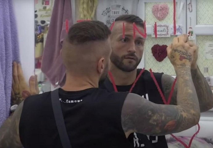 Našao je novi karmin, pa napisao jedno veliko - Izvini Ivv (tako je njegova bivša supruga upisana na društvenoj mreži Instagram), i stavio srce, kao jasnu poruku njegovoj bivšoj ženi.