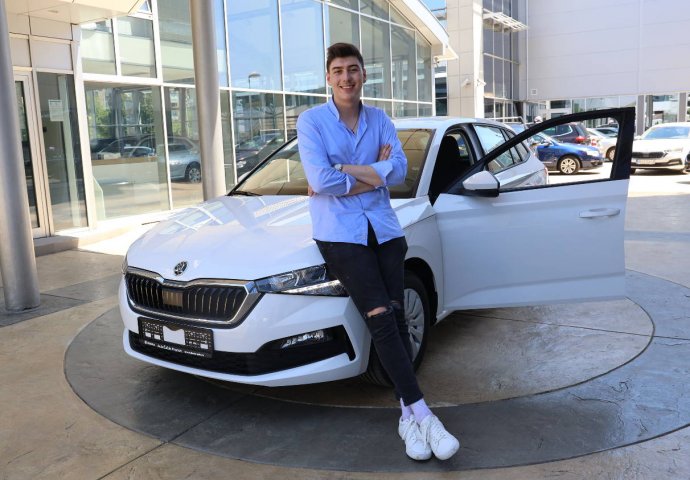 Dobitnik nove "Škode skala" bio je vidno raspoložen, a ključeve mu je uručila PR "Auto Čačka" Aleksandra Đokić.