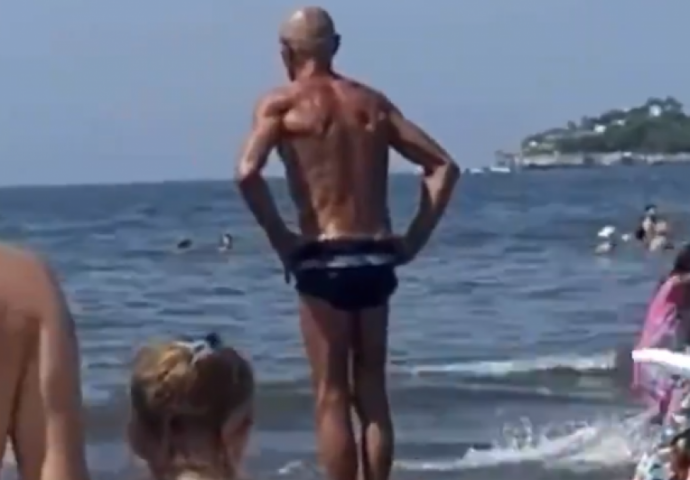 Nije ga omela čak ni činjenica da nije na stijeni, već u plićaku. Tako se čovjek namještao i namještao, privlačeći pažnju radoznalaca, a onda je konačno skočio.