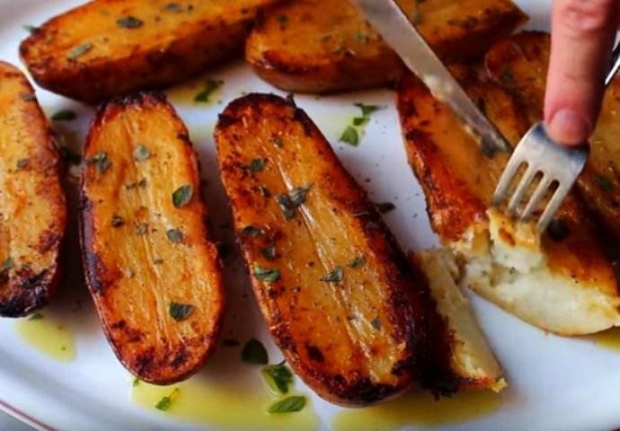 Za savršeni pečeni krompir izbjegavajte upotrebu aluminijumske folije. Još jedna tajna savršeno pečenog krompira je soda bikarbona. Da biste postigli najhrskaviju koricu na pečenom krompiru, pokušajte ga delimično prokuhati u šerpi vode s pola kašičice sode bikarbone prije nego što ga stavite u rernu.