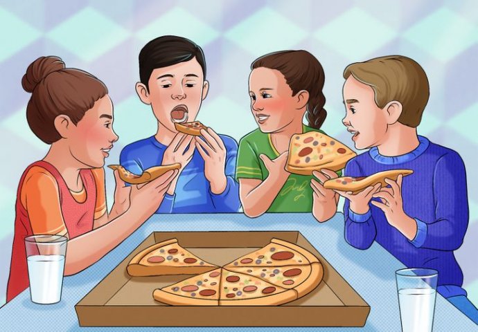 Djeca u rukama imaju 4 komada pice, a samo ih 3 nedostaje u kutiji.