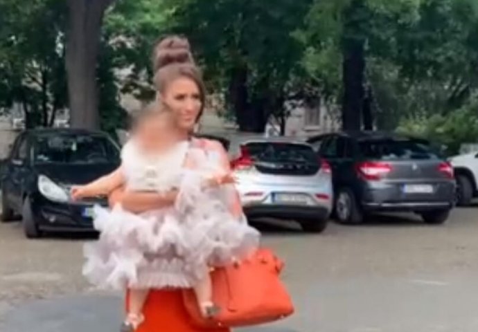 Dijana se pojavila u narandžastoj haljini i vezane punđe, a sve vrijeme se smješkala dok su svirali trubači. Bebicu je obukla u svijetlu haljinu sa tilom.