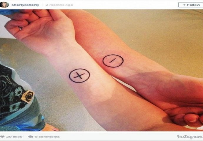 Prava ljubav ne poznaje granice! Zanimljivosti 14.09.15. 10:42 Da li biste i vi uradili neku od ovakvih tetovaža sa partnerom ili najboljim prijateljem? Suprotnosti se privlače