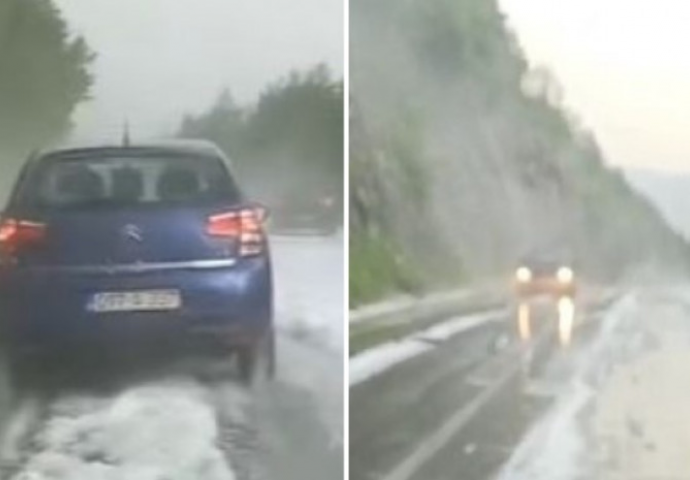 NESTVARNE SCENE SA IGMANA: Snažno nevrijeme, grad prekrio cestu