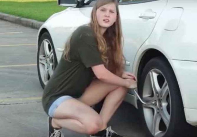 Tog dana nije bilo puno posla. Sjedim sa svojim kolegama, dosađujem se. Odjednom ispred radnje staje auto, “Pežo” crvene boje, sa skroz ispuhanom gumom na prednjem desnom točku. Izlazi iz njega sva bitna, glamurozna djevojka…