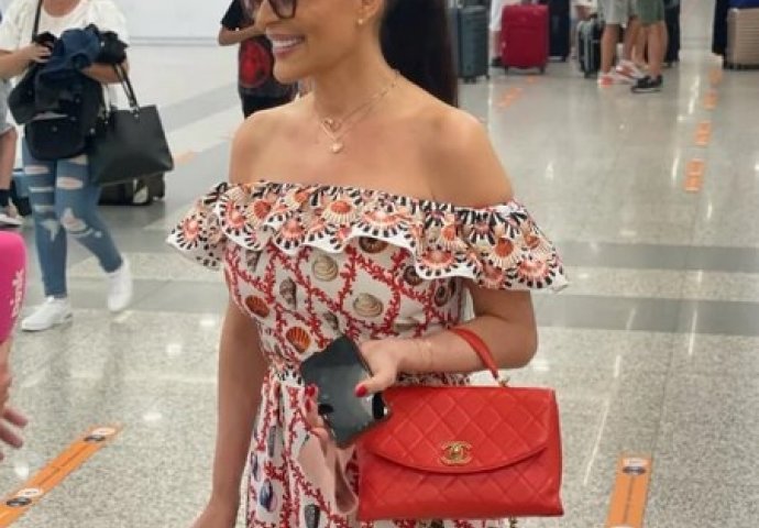 Naime, Ceca se na aerodromu pojavila u elegantno izdanju. Na sebi je ponela cvetnu haljinu i crvene stikle.