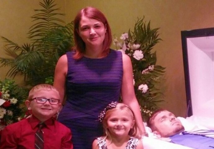 Na fotografiji se vide Eva, njeno dvoje djece i njen mrtvi suprug Majk u mrtvačkom kovčegu. Ova majka iz Ohaja želela je da objavom ove fotografije upozori na opasnost od zloupotrebe opojnih droga, jer njen je 26-godišnji suprug preminuo upravo zbog predoziranja heroinom.