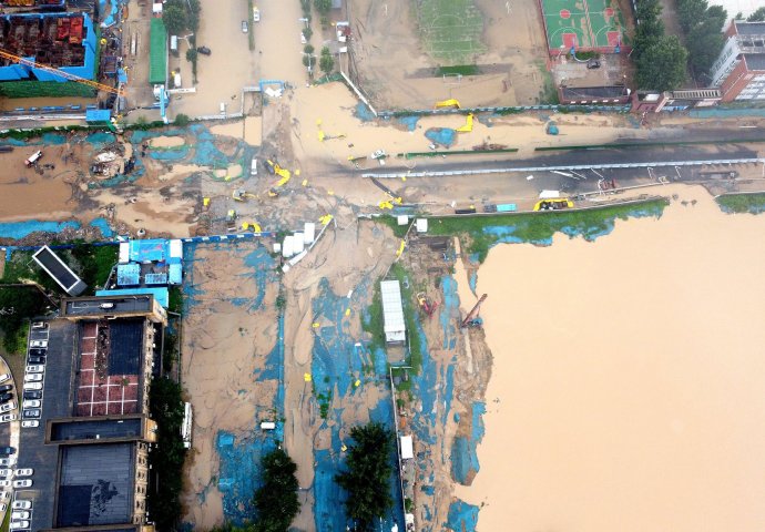 Kišna bujica pretvorila je ulice u rijeke koje brzo teku, poplavila stanice podzemne železnice i potopljene automobile u gradu Džengdžou.