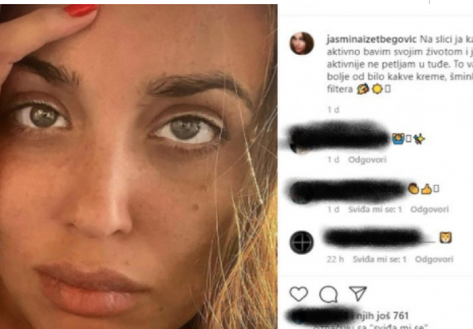 – Na slici ja kako se aktivno bavim svojim životom i još aktivnije ne petljam u tuđe. To vam je bolje od bilo kakve kreme, šminke i filtera – napisala je Jasmina.