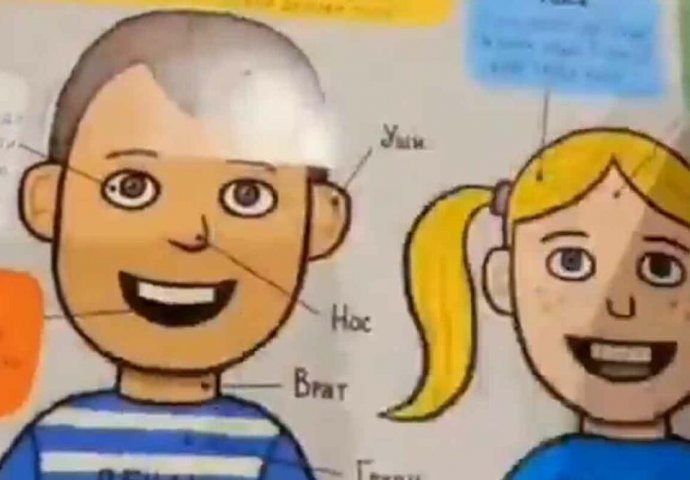 Na društvenoj mreži Tviter pojavio se snimak knjige za djecu i stranica na kojoj su obilježeni određeni dijelovi glave i lica kod ljudi.