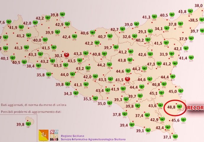 Izmjerio ju je SIAS - agrometeorološki informativni servis Sicilije.