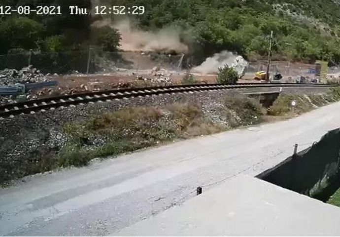 STRAŠAN TRENUTAK: Snimljeno kako ogromna kamena gromada pada na prugu i cestu u Čapljini (VIDEO)