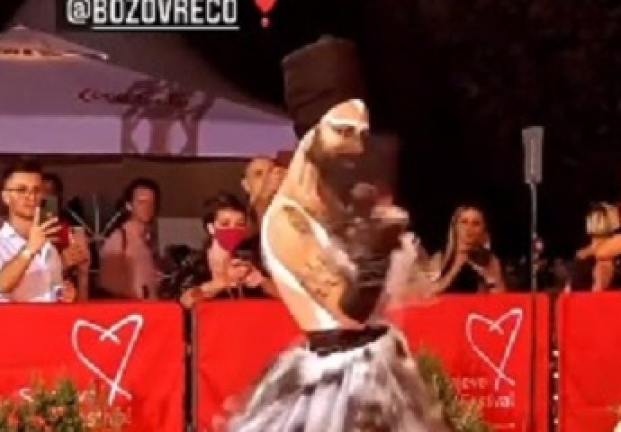 Kao i uvijek privukao je pažnju svojim izgledom. Večeras se pojavio u sivoj haljini koja istaknula njegove brojne tetovaže.