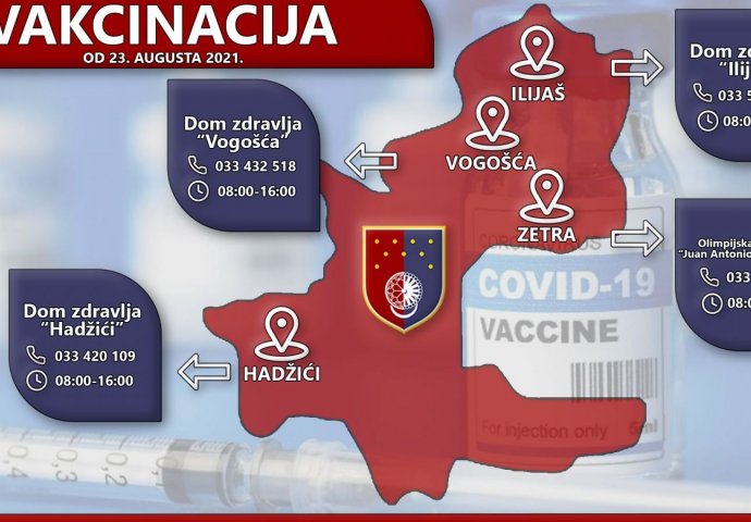 Kako je ranije najavljeno, početkom naredne sedmice počinje vakcinacija na punktovima u domovima zdravlja Vogošća, Hadžići i Ilijaš, gdje će na raspolaganju građanima biti Sinopharm vakcine.
