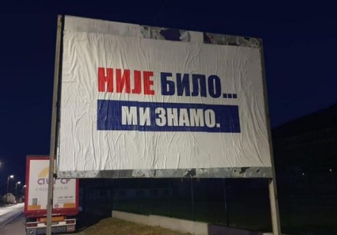 Bilbord “Nije bilo… Mi znamo.” nelegalno postavljen u Rogatici