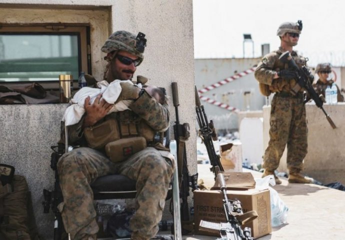 Na međunarodnom aerodromu Hamid Karzai u Kabulu tijekom evakuacije je, kako navodi Reuters, nastala fotografija marinca koji u naručju drži bebu.