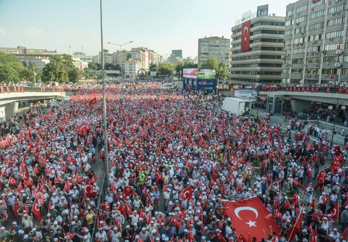 Ljudi su mahali zastavama i marširali od trga Sihhiye, da bi zatim prošli pored Velike narodne skupštine Republike Turske.