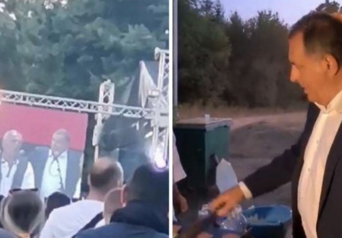 Dodik je, naime, snimljen u večernjim časovima kako vidno raspoložen okreće ćevape i tikvice na roštilju, dok mu okupljeni dobacuju da mora sve okrenuti.