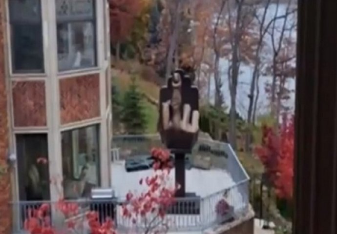 On se doselio u kuću pored njene i u svom dvorištu postavio skulpturu ogromne šake sa podignutim srednjim prstom u koju dotična gospođa može da gleda s prozora svakog jutra dok se tušira.