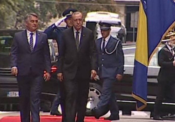 Turski predsjednik Recep Tayyip Erdogan uz vojne počasti dočekan je ispred zgrade Predsjedništva Bosne i Hercegovine.