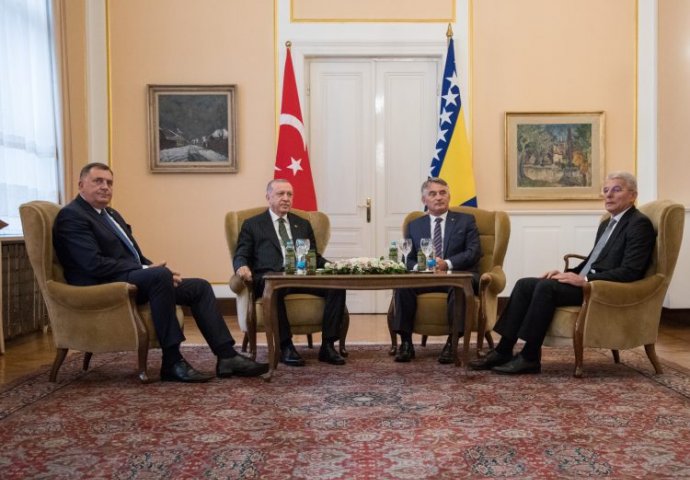 Članovi Predsjedništva Bosne i Hercegovine Željko Komšić, Šefik Džaferović i Milorad Dodik sastali su se sa truskim kolegom Recepom Tayyipom Erdoganom koji boravi u službenoj posjeti.