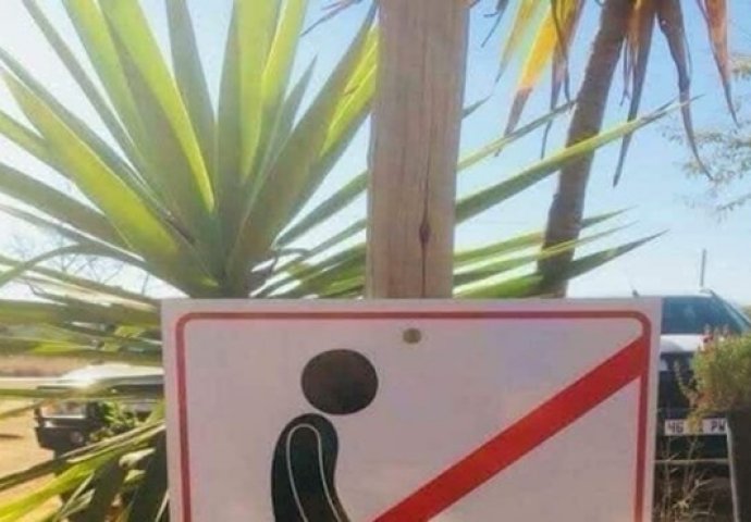 Nakon što muškarci vide ovako ozbiljnu prijetnju na znaku zabrane, teško da će im pasti na pamet olakšati se u blizini plaže, piše Lajk.hr.