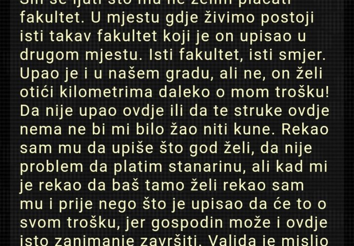 "Sin se ljuti što mu ne želim plaćati fakultet.