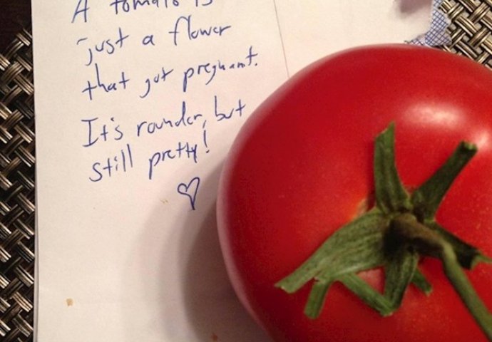 MUŽ JE SAZNAO DA SAM TRUDNA, A ONDA MI JE OSTAVIO OVU PORUKU: Pored nje 1 PARADAJZ, kad sam pročitala SVE MI JE BILO JASNO! Kiosk 06.10.21. 09:21 . MUŽ JE SAZNAO DA SAM TRUDNA, A ONDA MI JE OSTAVIO OVU PORUKU "Muž mi je ostavio poruku: 'Rajčica je zapravo samo trudni cvijet. Okrugliji je, ali je i dalje lijep!'"