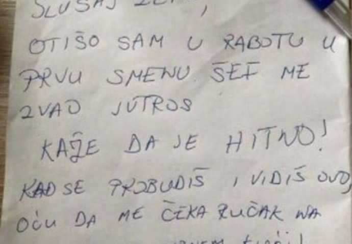 Na društvenim mrežama pojavila se poruka koju je suprug ostavio ženi nakon što je hitno morao na posao.