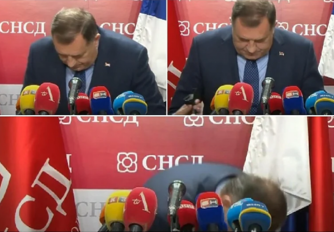 Član Predsjedništva BiH Milorad Dodik danas je govorio na konferenciji nakon Izvršnog komiteta SNSD-a, kada je desila mala nezgoda.