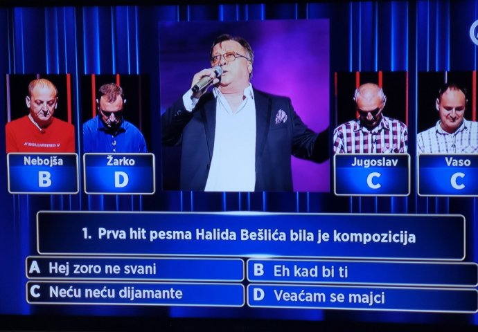 NISU SVI TAKMIČARI ZNALI: Koja je bila prva hit pjesma Halida Bešlića? Kiosk 12.10.21. 16:42 U kvizu "Potpuni preokret" zanimljivo pitanje dobili su takmičari. U kvizu "Potpuni preokret" zanimljivo pitanje dobili su takmičari. Naime, pitanje je glasilo: Koja je bila prva hit pjesma Halida Bešlića? RJEŠENJE: