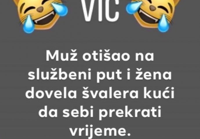 VIC DANA: Nevjerna žena Kiosk 19.10.21. 08:20 , Muž otišao na službeni put i žena dovela švalera kući da skrati sebi vrijeme. Taman se oni poskidali kad žena čuje kako muž... NASTAVAK N NAREDNOJ STRANICI--->
