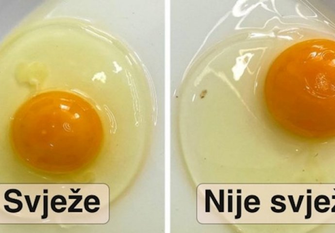 Kad razbijete jaje, pogledajte žumanjak. Ako se nalazi u sredini i oko njega je jasan krug od bjelanjaka, to znači da je svježe. Također, sam žumanjak bi trebao biti voluminozan. Ako je spljošten i ravan - jaje nemojte jesti. Ako bjelanjak nema jasne granice i ako se jaje širi, to je najčešće znak da se radi o pokvarenoj namirnici.
