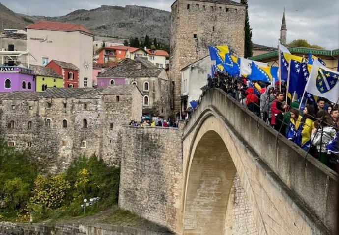 Na Starom mostu u Mostaru obilježena je godišnjica rušenja luka mosta i okolnih objekata 9. novembra 1993. godine. Mostarci su noseći zastave BiH bacili u Neretvu cvijeće nakon sirene koja je Mostarcima bila znak opasnosti tokom rata.