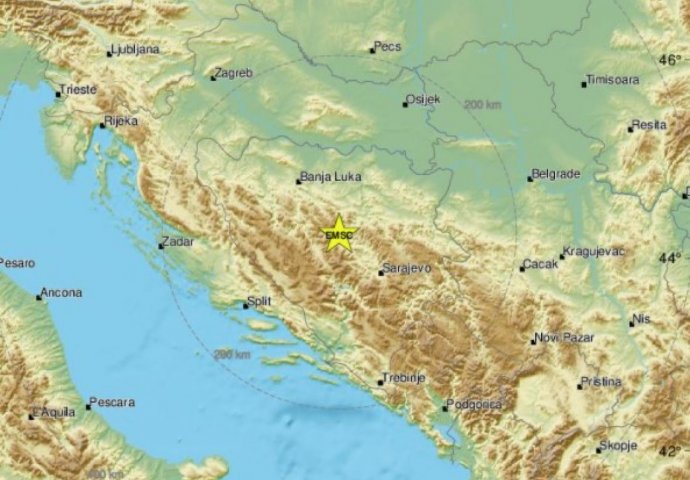 Bosnu i Hercegovinu je u 16.17 sati pogodio zemljotres, javio je EMSC.