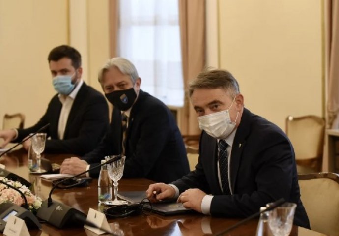 Nakon sastanka sa Komšićem, održan je sasanak i sa Šefikom Džaferovićem, dok će sa trećim članom Miloradom Dodikom razgovarati tek u 15:00 sati.