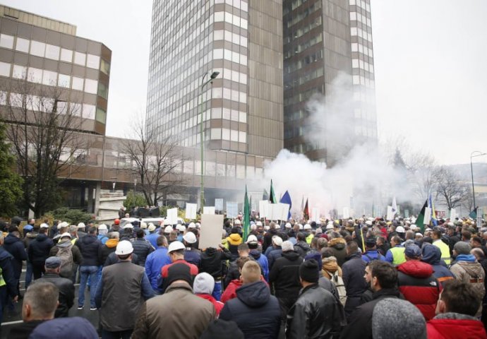 Radnici iz sedam rudnika u Federaciji Bosne i Hercegovine, koji posluju u okviru Elektroprivrede BiH došli su ispred zgrade Vlade FBiH i protestom iskazuju nezadovoljstvo svojim položajem.