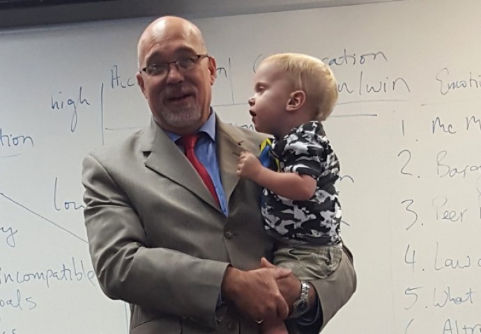 Niko nije bio više izenađen nego profesor Joel Bunkowske, kada je ustanovio da je fotografija na kojoj drži sina jedne od studentica postala apsolutni hit.