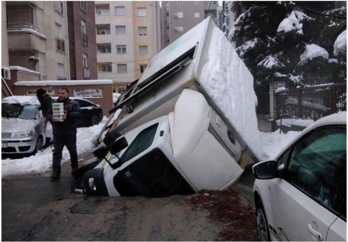 U rupu je propalo dostavno teretno vozilo. Saobraćaj je obustavljen u obe ulice, i srećom nema povrijeđenih.