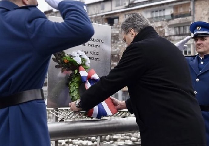 Predsjednik Vlade Hrvatske Andrej Plenković položio je vijenac na spomen-obilježje na mostu "Suade i Olge" u Sarajevu.