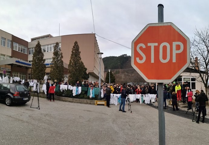 U krugu Opće bolnice nema više okupljenih ljekara i zdravstvenih radnika, samo okačeni bijeli mantili koji šalju prejaku poruku, da je država ostavila na cjedilu ljude koji spašavaju živote.