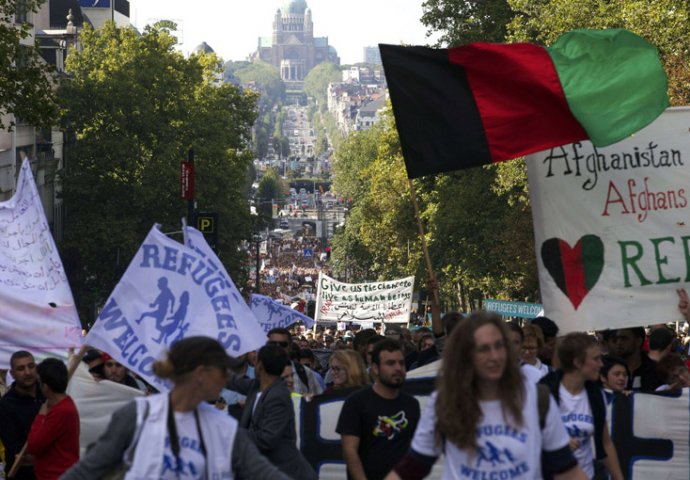 Više od 15.000 ljudi prošlo je u nedjelju kroz centar Brisela u šetnji održanoj u znak podrške izbjeglicama, koju su organizovali aktivisti za ljudska prava.